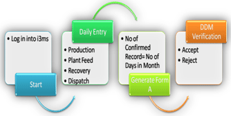 The Licensee updates online return on daily plant fed of ROM or ROM (CLO), which is received from Stock Yard at plant site, daily consumption by self, recovery of processed ore or residual, daily dispatch of processed ore or residual which gets automatically populated Transit Pass. The licensee need to confirm the Plant Fed, Self Consumption, Sale of residual data and submits return online by 7th of the preceding month.. The concerned circle mining office receives the online return for approval by 10th of the same month.